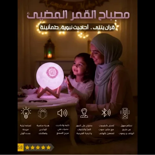 مصباح القمر الذكي مع مُشغل القرآن الكريم - جودة صوت رائعة وإضاءة مُريحة